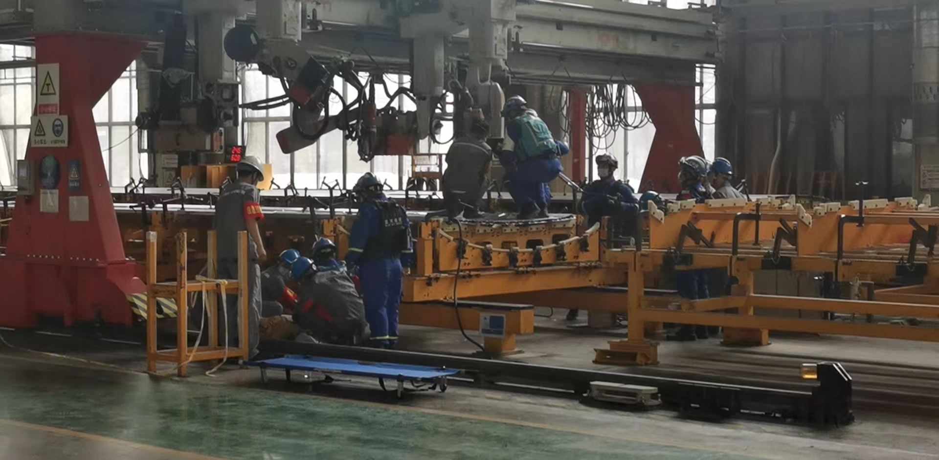 此次演练贴合实际,以自动焊接作业为背景,自动焊接机出现机械故障,导致一名焊接工手被挤压,另一名焊接工腿部被撞击,造成机械伤害。演练主要包括启动机械伤害专项应急预案,救援小组实施救援及求助就近应急救援力量进行救援的方式进行演练。上午9时,随着现场负责人一声令下,演练正式开始!救援小组反应迅速,现场救援力量配合默契、操作规范,演练环节紧凑有序,高质量完成了各项演练内容。