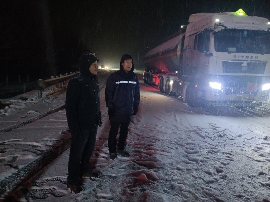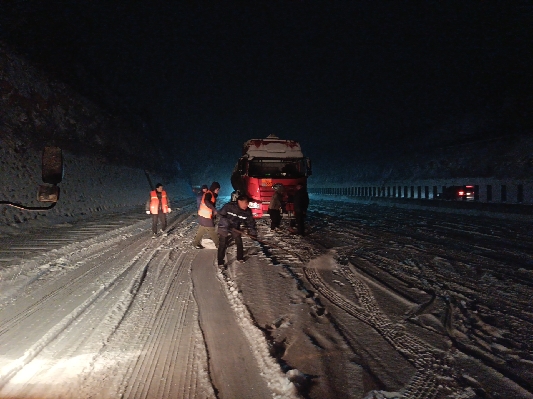 作业现场井然有序,融雪剂撒布车、除雪车等各类专业设备齐装上阵,日夜不停持续奋战,对管养范围内国省干线及县道重点路段全域喷洒融雪剂,针对桥梁、长陡下坡、依山临崖、急弯陡坡等易结冰关键区域,采取“机械作业+人工补位”协同模式,养护人员顶风冒雪开展融雪剂精准补撒,实现除雪融冰无死角、全覆盖。同时,现场养护人员积极协助解救沿黄快速通道被困车辆,彰显公路人担当。