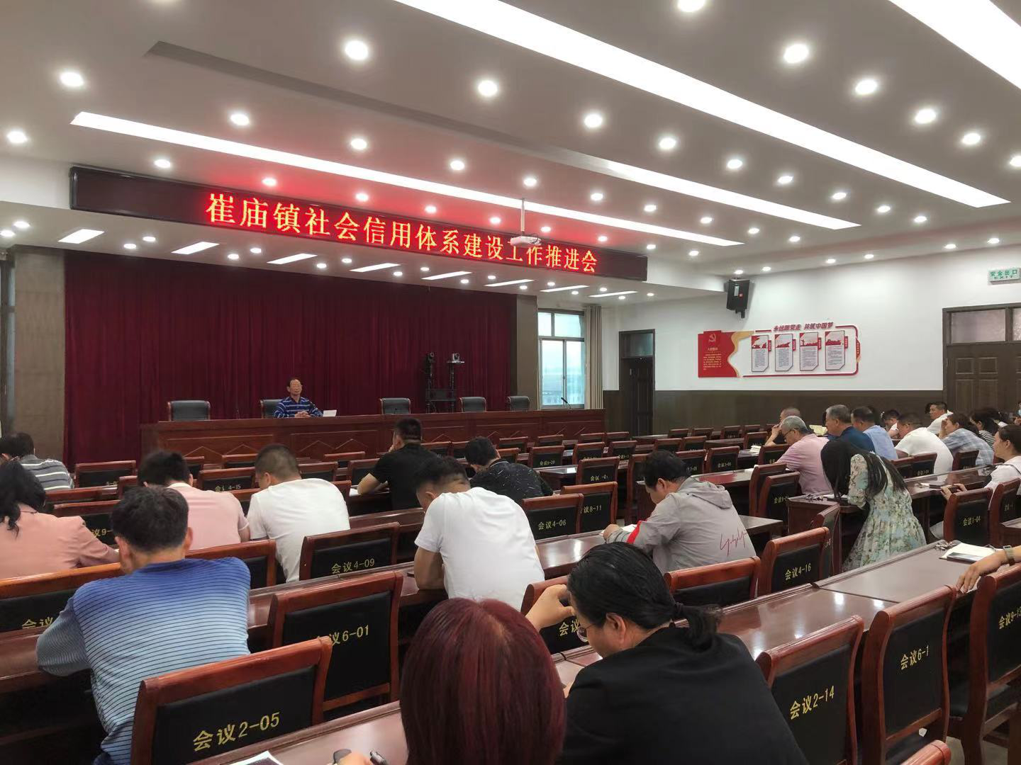 崔庙镇为扎实推进社会信用体系建设工作,于2021年5月10日再次召开社会信用体系建设工作,组织开展诚信宣传推进活动,坚持以“强化诚信意识,促进社会发展”的方针,以“走诚信之路,创文明乡镇”为主题,以内容丰富、形式多样的方式来推动诚信文化的建设。