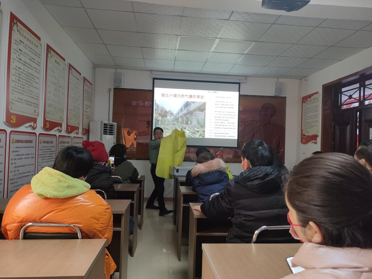来自社安防火中心的杨教官则来到索河湾社区,为20余户商户进行统一授课。杨警官结合发生的火灾实例,对火灾的发生、处理、疏散逃生技巧、自救他救技巧作了生动精彩的讲解,并就燃气安全相关知识进行了系统培训。