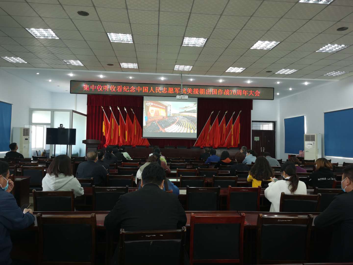 10月23日上午,纪念中国人民志愿军抗美援朝出国作战70周年大会在北京人民大会堂隆重举行,城关乡组织全体机关干部50余人,在乡大会议室集中收听收看了大会实况。